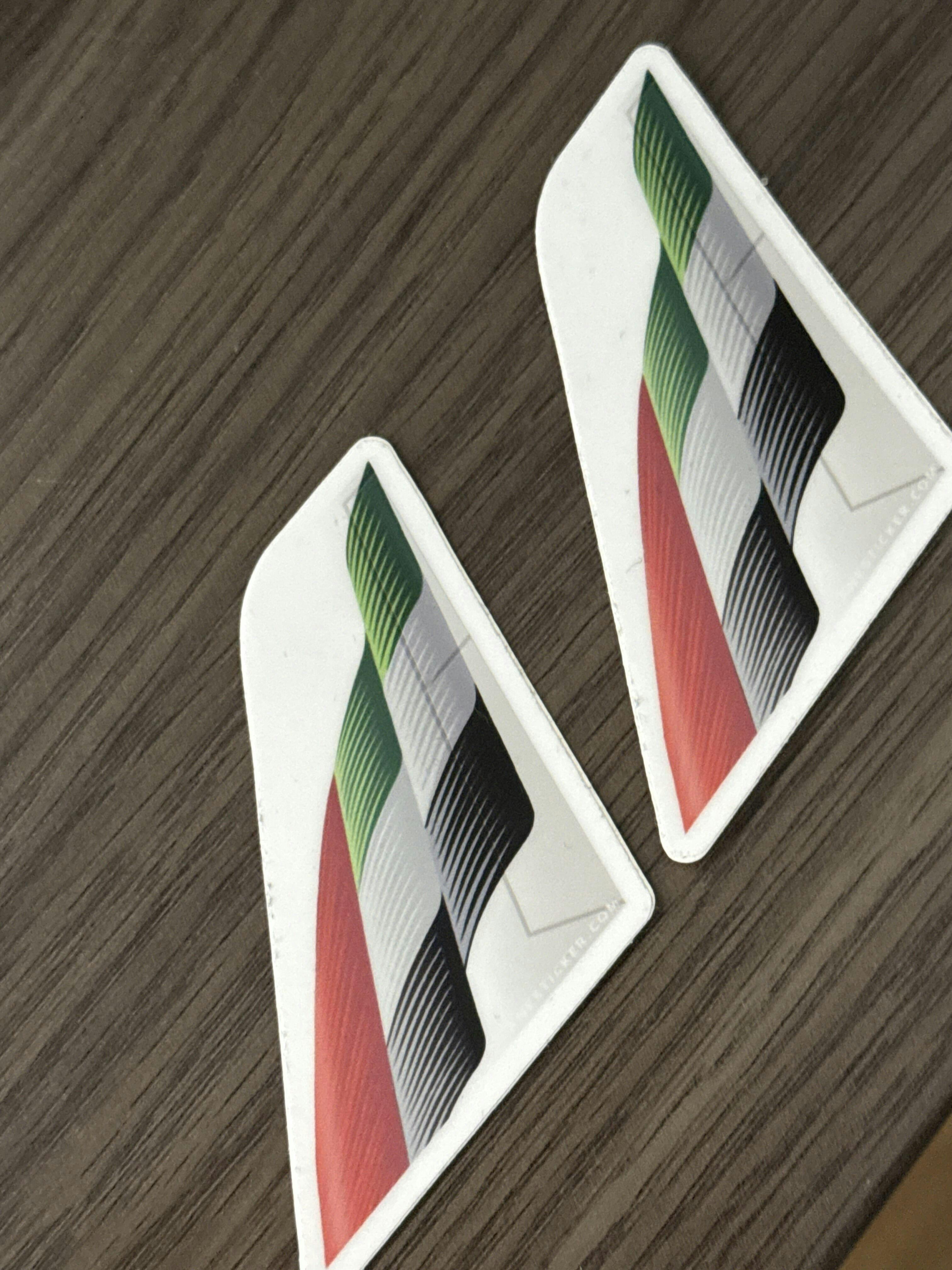 Emirates Tail Art. Don't stress about quality and durability. Our custom stickers feature a special laminate that protects them from exposure to wind, rain and sunlight. You can even put them in your dishwasher and have them come out looking brand new.