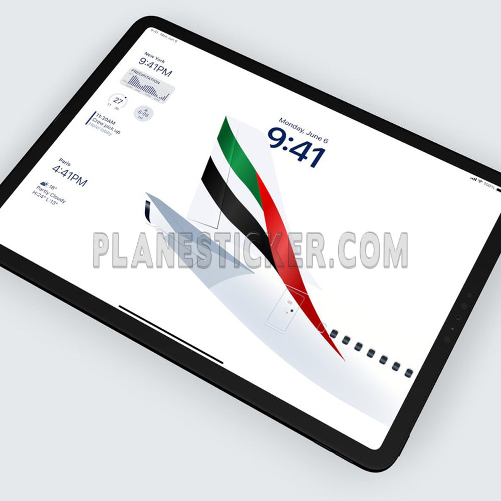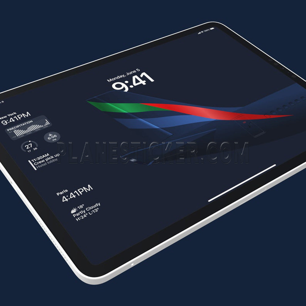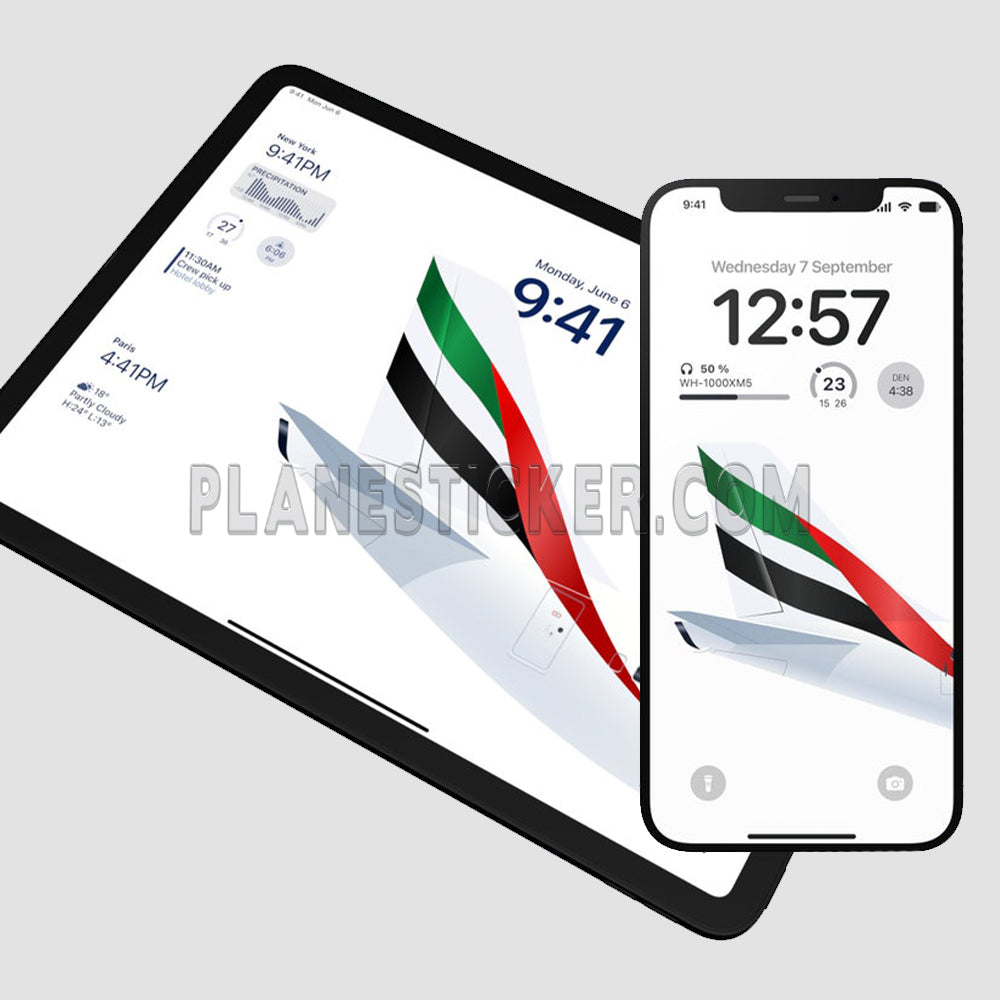 Personalise your iPad and iPhone with our Emirates wallpapers. Fly high in luxury and style with our exclusive Emirates wallpaper set for your iPad and iPhone. With a choice of both light and dark mode, these high-resolution wallpapers feature iconic Emirates planes and logos that will transport you back to the skies every time you glance at your phone. Perfect for aviation enthusiasts and anyone looking to add a touch of Middle Eastern sophistication to their device. Simply download and set as your background to instantly elevate your iPad and iPhone's look and feel. Fly in style with Emirates.