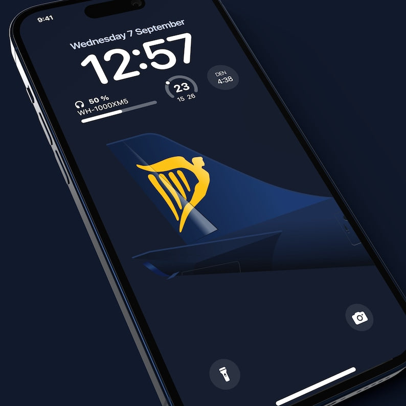 Fly high in style and fun with our exclusive Ryanair wallpaper set for your iPhone. With a choice of both light and dark mode, these high-resolution wallpapers feature iconic Ryanair planes and logos that will transport you back to the skies every time you glance at your phone. Perfect for aviation enthusiasts and anyone looking to add a touch of Irish cheer to their device. Simply download and set as your background to instantly elevate your phone's look and feel. Fly in style with Ryanair.